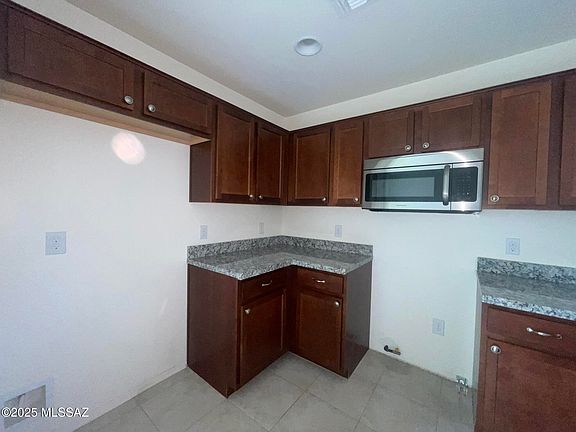 Discover your perfect retreat in the gated Rancho Resort 55+ community of Sahuarita. This well-designed 952 sq ft residence features 2 bedrooms and 1 bathroom, offering comfortable living for seasonal stays or year-round enjoyment. Enter through a spacious covered front porch into a private entry hall that opens into a bright living room and kitchen with open-concept layout and recessed lighting. The kitchen showcases granite countertop, a pantry closing and a kitchen nook. Residents enjoy a vibrant lifestyle with access to community amenities including exercise facilities, walking park, pickleball and tennis courts, and a resort-style pool and spa. This charming home blends low-maintenance living with active adult community perks!