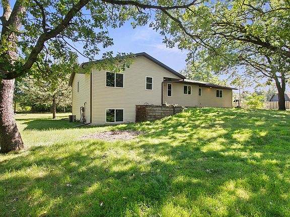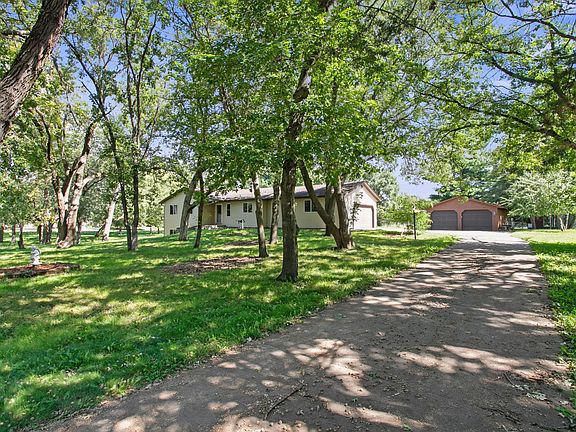 Discover your own private retreat in this beautifully maintained 4-bedroom, 3-bathroom home, perfectly situated on a gorgeous, wooded 1-acre lot. Enjoy the ideal blend of privacy, charm, and everyday convenience. Set back on a quiet, wooded lot ideal for peaceful living, backyard bonfires, and enjoying all four Minnesota seasons. A cozy wood-burning fireplace adds warmth and character for relaxing nights in. Attached 2-car garage for daily use, plus a huge detached 3-car garage—perfect for extra vehicles, a workshop, or hobby area. Fresh paint and new carpet throughout make this home feel brand new. Bright, clean spaces are ready for your personal touch. Thoughtful floor plan featuring 4 generous bedrooms and 3 full bathrooms. Enjoy a large L-shaped family room, great for entertaining, plus plenty of storage including a root cellar for canning, pantry items, or seasonal storage. Tucked away for privacy yet conveniently close to schools, parks, shopping, dining, and commuter routes. Newer windows and siding provide added comfort, efficiency, and peace of mind.
