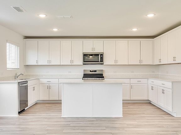 Brand new two story home on a large corner lot with 5 beds and 3 baths. Huge Kitchen with a beautiful center island is open to the massive open living space comprising the family room and two dining areas. Quartz countertops and white cabinets in the kitchen. Lots of storage space throughout the home. Master is tucked away from the other bedrooms for privacy. Beautiful tray ceilings in the living room. Luxury vinyl plank flooring in the kitchen, dining and family room areas. Carpet in the bedrooms. Texas-sized back yard. The community has very convenient access to 114 and is a short drive to the dining, shopping and retail. 5th bedroom downstairs has French doors with glass doors and can also be used a study room. Northwest ISD schools! No smoking allowed. Tenants pay for all the utilities and yard care. Home owner pays for the HOA dues.