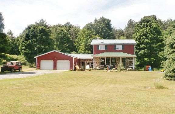 Charming Contemporary home with 3 bedroom, 1.5 bath conveniently located in quiet country setting. Features include gas log fireplace in den, free standing pellet stove in living room, two level deck with above ground pool, beautifully landscaped and 24 x 30 attached garage with lean to on the back of garage.