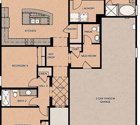 The Rutherford is 1891 square foot plan with 3 bedrooms, 2 1/2 baths, large mud room, and a three car garage. It can be modeified to include 4 bedrooms and three baths, or you can add a Home Office.