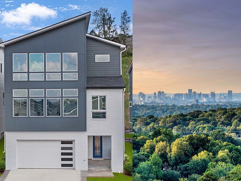 Unobstructed DOWNTOWN views from hillside modern homes nestled against Patterson Knob, one of the highest peaks in Davidson County. Ask about community seller paid closing costs AND exclusive permanent rate buydowns! Enjoy easy access to the best of city living and Williamson County, surrounded by rolling hills in a breathtaking setting. Feel the wide open spaces soaked in sunlight. Windows everywhere. Huge kitchen with full size fridge/freezer towers, gas cooktop, and wall oven/microwave are ready to entertain and take in the scenery. Custom modern fireplaces top off the living room. Custom primary BR closet systems, huge full panel master showers. Views north to DOWNTOWN, west toward the Brentwood hills, and southeast overlooking Nolensville. 45 Custom homes in community.