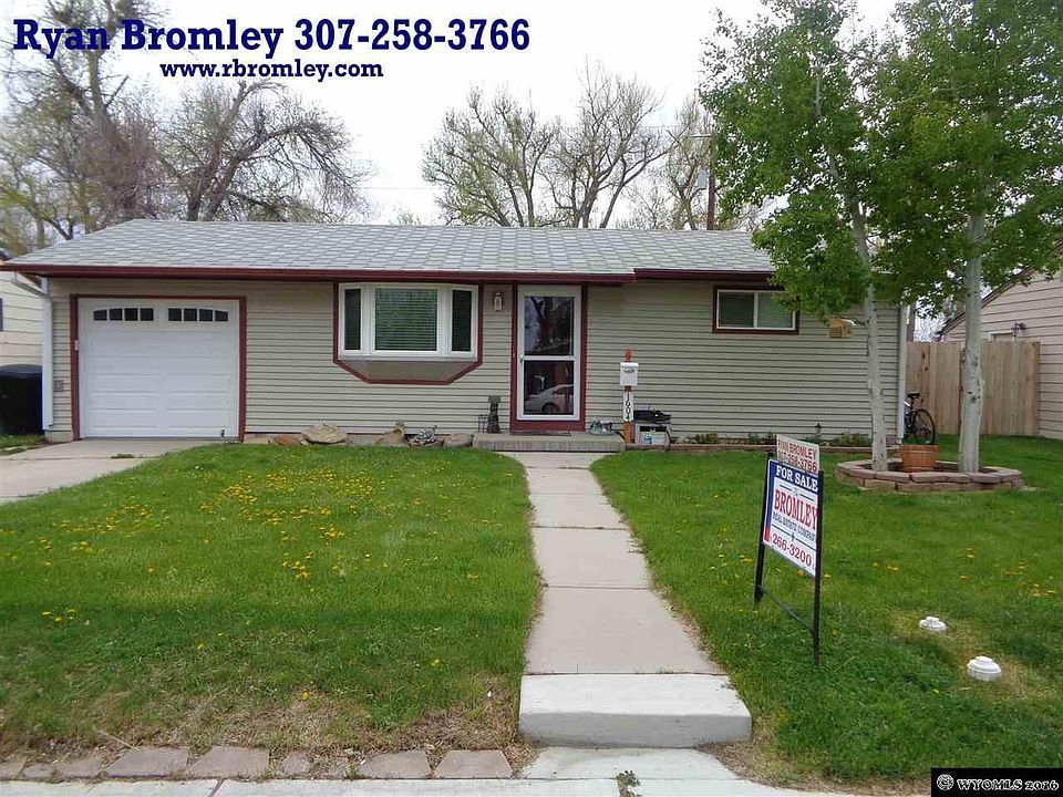 Exceptional one level home. Many updates including new kitchen with a gas stove, bath with a jet tub , windows, steel siding with insulation, garage door, front doors, fence & more. 2 bdrm, 1 bath & a very open kitchen with an island that is ideal as a table. Low maintenance, move-in ready home. Nice back yard with a shed, paved alley access & no houses behind you. 1 car garage that is heated. All appliances, bar stools, & a brand new washer/dryer stay with home. Call Ryan Bromley 307-258-3766