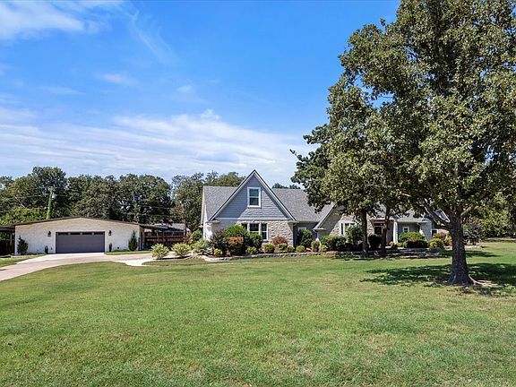 This is your opportunity to own a beautiful custom built home on a peaceful 1.82 AC. The home boasts an open floor plan with a chef's dream kitchen including a Bosch gas range, KitchenAid dual ovens, granite countertops, walk-in pantry, tons of cabinet storage, and a large island. The primary suite features a lovely ensuite bathroom with a garden tub, walk in shower, dual sinks, & large walk in closet. The dining room & large family room is separated by a stone double sided fireplace with gas logs—each room featuring beautiful vaulted ceilings. Both downstairs bedrooms are split on each corner of the home with ensuite bathrooms. Large utility room with a separate sink is located off the entrance to the garage. There is a wonderful private office off the primary bedroom. The upstairs has a separate living quarters including its own living room and ensuite bath with a walk in shower. The covered back porch is 32' and allows you to enjoy the peaceful backyard setting along with a separate outdoor fireplace and sitting area. The adjacent 40' x 50' shop is a dream space for any hobby enthusiast. Perfect for a car collector, hot rod shop, or anyone wanting their own private space to outfit with TVs or even a golf simulator! The opportunites are endless for this finely finished out shop. It has a full kitchen with granite, bathroom with shower, & beautiful stained concrete floor. The shop is fully insulated, constructed of concrete block walls with exterior stone finish, & features LED lighting, air lines, commercial air compressor, gas heat, & a front 16' x 8' roll up door with an additional side roll up door to the backyard porch. It has a covered porch facing the backyard and a serving window with bar for entertaining guests. There is a covered equipment storage space on the side of the shop. A second 40' x 30' concrete floor shop is adjacent to the main shop with a 20' x 30' covered bay. Don't miss this opportunity for a custom built home with a high quality shop!