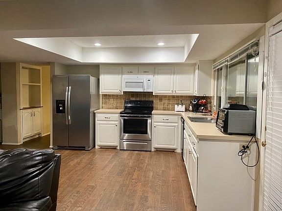 Wood look tile in all areas but bedrooms. Updates to bathrooms. Full sprinkler system to include soakers for foundation. Agent is owner and seller.