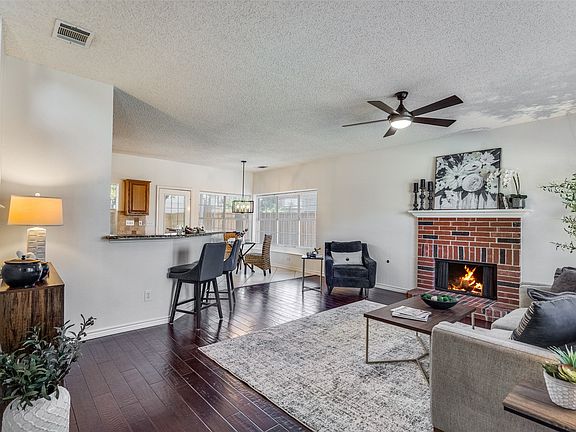 Lots of updates in this beautifully Maintained Home in Prime Plano Location. Welcome to this warm & inviting home, perfectly situated just north of Legacy. Enjoy the convenience of being within walking distance to top-rated Hedgcoxe Elementary, local playgrounds, & the expansive 100+ acre Hoblitzelle Park, featuring scenic trails, sports fields, & serene creek views. Step inside to a freshly painted, light-filled entryway with soaring 2-story windows. The open-concept living area is bright & welcoming, anchored by a cozy brick gas fireplace & oversized windows. The adjoining kitchen offers granite countertops, ample cabinetry, stainless steel built-in applcs (including a gas cooktop), an appliance garage, & a charming bay window overlooking the backyard. A large raised countertop provides plenty of space for barstools—ideal for casual dining or hosting friends. Just off the kitchen, you'll find the formal dining rm, laundry & half bath. There's also a 2nd living area downstairs that could be used as a playroom, or additional office. Step outside to your own backyard retreat! A spacious 24x10 covered patio is perfect for gatherings, & the oversized yard is fully fenced with board-on-board fencing & shaded by two mature trees—perfect for play, pets, or relaxation. Upstairs, the private primary suite is a peaceful getaway, featuring a wall of windows, a cozy sitting area, dual vanities, jetted soaking tub, separate shower, & an expansive walk-in closet. You'll also find a large office up that could easily serve as a 3rd living space, or converted into a 4th bedrm. Recent updates include:Full interior paint (Oct 2025), HVAC's (Oct 2022 & June 2025), Water heater (2024), Garage door (2024) & Roof (2016). With easy access to both Highway 121 and US-75, this location is ideal for commuters & offers all the benefits of nearby shopping, dining, & top-rated schools. This home has been lovingly cared for & is move-in ready—your most selective buyers won’t be disappointed!