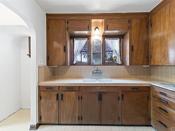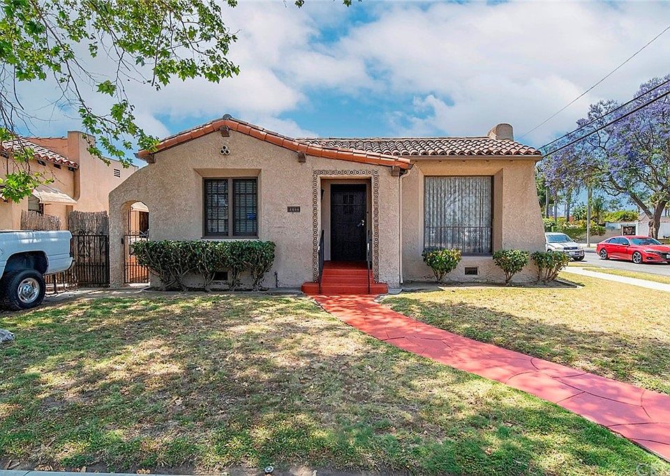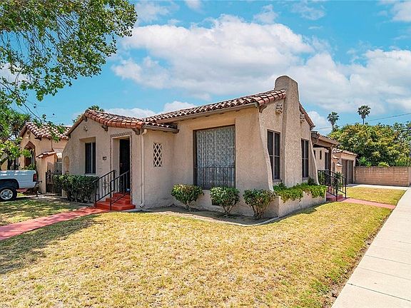 Welcome home to this charming vintage Spanish style 3-bedroom 1 bath home. Spacious living room has inlaid decorative wood floor underneath the carpet (per seller), you can see a sample in the corner by the faux fireplace - Coved and tray ceilings, typical for the era - Floor furnace in the living room and hallway - Ceiling fans - Kitchen has tiled counters and pantry - Separate dining room and breakfast eating area - Middle bedroom has built in dresser in the closet - Rear bedroom has a built in vanity and closet in the alcove - Hallway has additional closet and built in cabinets - Tub/shower combo in bathroom with pedestal sink and built in cabinet - convenient indoor laundry room with sink - electric was re-wired and grounded approx. 10 years ago - plumbing was changed to copper approx. 5 years ago - Newer garage door - outside electrical behind garage - Shed in backyard is staying - Enjoy the trees in the back yard, Avocado, orange, grapefruit, tangerine, lemon and cumquat - this home is full of character and unlimited potential.