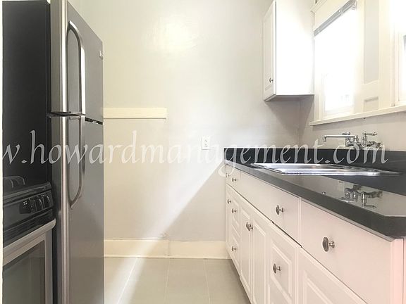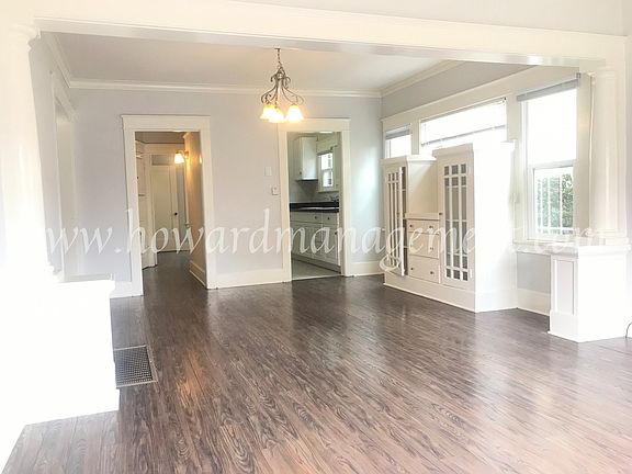 Charming lower apartment with gorgeous engineered hardwood floors throughout. Spacious living room with ceiling fan. Formal dining room with chandelier and original built-in cabinetry. Stack-able washer and dryer in separate room. Kitchen has quartz counter-tops and stainless steel refrigerator and gas range (stove/oven). Plenty of closet space throughout. Unit comes with one parking space. Water and trash are paid for. Will consider a small pet with additional deposit. Washer, Dryer and Refrigerator are not warranted for repairs and/or replacements. Professionally managed and online rent payments available.