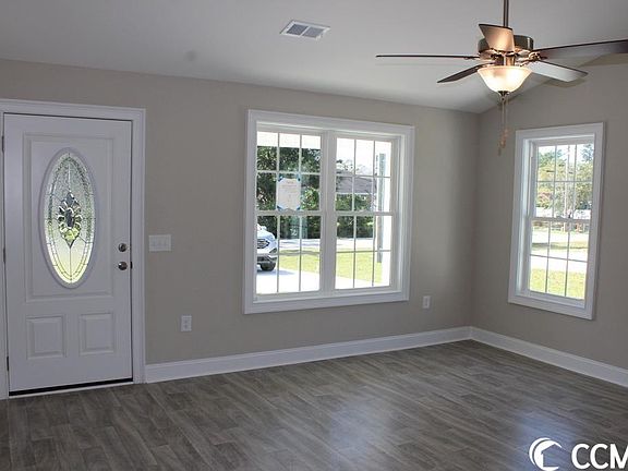 No HOA! Move-In Ready! Popular Carolyn floor plan has a welcoming low country front porch and covered rear porch with patio. Great location, close to downtown Conway. Our standard features include: gutters, sodded yard with irrigation system, finished and painted garage with garage openers and remotes, floored storage (per plan), ceiling fans (per plan) 2 1/4 " window casings, 5 1/4" base boards, choice of paint colors, white painted ceilings, stainless steel kitchen appliances, recessed can lights in kitchen, custom built wood cabinets with crown molding and knobs, double sink vanity in primary bathroom, along with a garden tub and separate shower (most plans), windows in the bathrooms, front porch, rear covered porch (most plans), rear concrete patio, 2 coach lights at garage, 2 flood lights, 30 year architectural shingles, window screens, and shutters (per plan). Award winning, local builder. Square footage is approximate and not guaranteed. Buyer is responsible for verification.