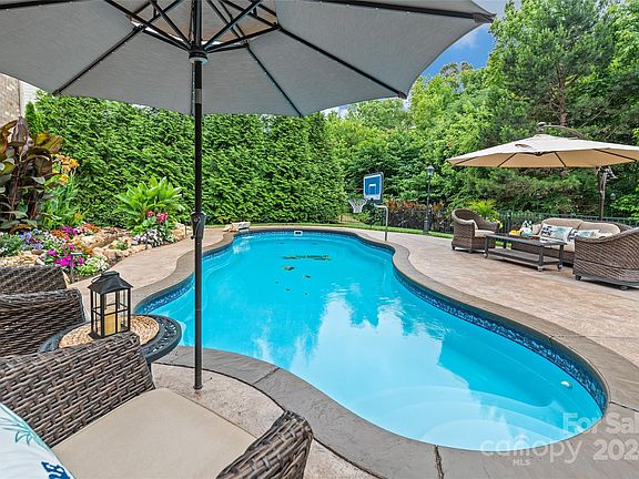 This immaculate 5-bedroom home features a stunning backyard oasis in Millbridge. A saltwater pool is surrounded by stamped concrete decking, lush landscaping, and a beautiful water feature. One of the few all-brick homes in the neighborhood, the house has an open floor plan on the main level with an office and guest bedroom. Elegant details throughout the home include updated light fixtures, a coffered ceiling in the Great Room, bay window in the Dining Room, and vaulted ceilings in many of the bedrooms. The kitchen has Frigidaire professional appliances including double ovens and an induction cooktop. The hardwoods are in excellent condition and the carpet was just replaced in May 2024. Upstairs you’ll find a bonus room and a spacious primary bedroom suite. Bedroom 2 has a private bathroom and the other two bedrooms share the 4th bathroom. Excellent closet storage. Backyard access to the Carolina Thread Trail. Short walk to the community amenities. Top-rated Union County schools.
