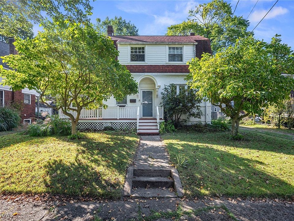 Welcome home to 1604 Ottawa Ave., a charming Colonial nestled between Goodyear Heights Metro Park and Reservoir Park in Goodyear Heights. Upon entering the front door and into the spacious and cozy living room with an updated gas fireplace, you will feel right at home. The living room has access to the wrap-around porch, which leads to the private backyard oasis with a brick-paved patio and opens to the dining room through a large, beautiful archway. The dining room is open to the kitchen through another smaller but equally beautiful archway. The kitchen has everything you need, including ample cabinetry and countertop space, SS dishwasher, SS range, SS microwave, and fridge, and has enchanting views of the backyard, which features a nicely sized screened-in deck, detached garage, and gorgeous landscaping, including your very own fruit tree. The curb appeal of this home is stunning in any season, but the spring bloom will certainly impress! The second floor features two sizeable bedrooms and an updated full bathroom, and the unfinished basement is perfect for storage and houses a new washer and dryer. The entire home