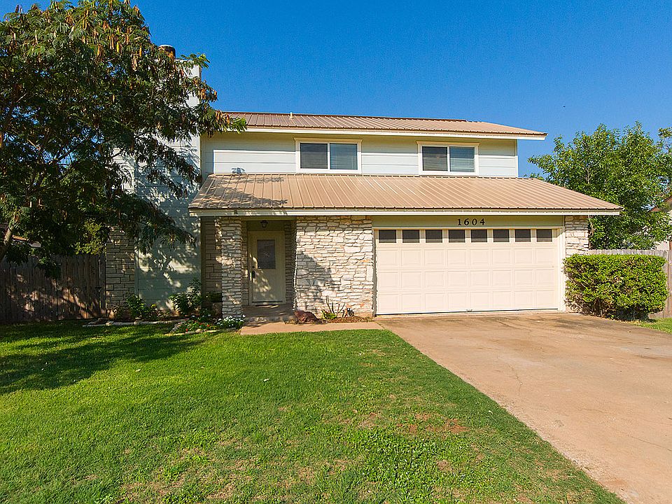 Nestled between I35 & SH 45, spacious and lovely with many upgrades, this 1665 sq. ft. two story home in Chisholm Valley has a lot to offer. Three bedrooms and two and a half bathrooms. Large private backyard with spacious covered patio with ceiling fans. Perfect for outdoor entertaining! Beautifully installed new granite counters installed in kitchen and bathrooms within the last month! Within the last 5 years this home has a new garage door, lifetime metal roof with radiant barrier, hardie plank siding, double pane windows, wood burning fireplace, and new privacy fence. Recently: all carpet has been replaced by laminate, new paint inside, new high efficiency Carrier HVAC , new built in microwave and new water heater. Water softener conveys. Beautiful stone fireplace in living room. No HOA! $164,900