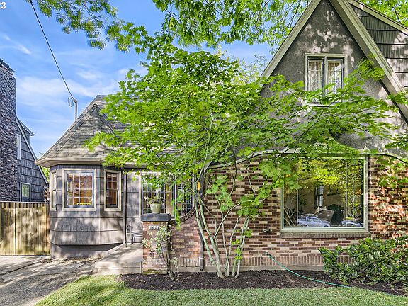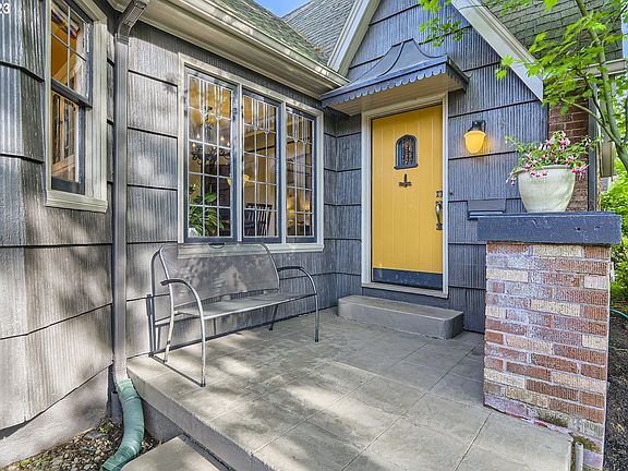 Situated perfectly between Hawthorne and Division sits this beautifully maintained and spacious 1935 Tudor home with original character. Arriving at a honey colored front door, a dragonfly door knocker and whimsical gnome window greet you. Step inside and be delighted to find a warm cottage-like atmosphere worthy of a Portland fairytale. Take pleasure in the architectural details and period charm throughout; coved ceilings, wood trim, hardwood top nailed floors, storybook tile, leaded glass windows, built ins and a sliding pocket door. An adorable light-filled kitchen nook, generous living spaces, original wood burning fireplace, ample storage, two car driveway, and garage with plenty of space are only a few of the unique and special aspects of this home. The upper level features two bedrooms with two full baths plus oodles of closet space. The primary bedroom's walk in closet connects to a private full bath. Open the french doors in the primary bedroom, grab a book and relax on the private deck nestled amongst the leaves. Or make friends with the squirrels playing on the upper branches of the tree beside you. Peak over the balcony to watch the seasons change and neighbors frolicking at Sewallcrest park, only a block away. The lower level features a furnished basement with versatile spaces, laundry, pantry and more storage. The enormous family room is ideal for movie nights, playdates and sleepovers. The bonus room with a half bath and two large egress windows allows plenty of natural light and can be used as a home office, exercise room, fifth bedroom or guest quarters. Main level has two bedrooms, extra large living room, dining room, eat-in kitchen, full bath and sliding glass doors leading to a large fenced backyard with patio and deck ready for outdoor entertaining on warm summer nights.Close to shopping and restaurants on Hawthorne, Division and Belmont. Conveniently located near schools, parks, coffee, bars, food trucks, public transportation, bike paths [Home Energy Score = 1. HES Report at https://rpt.greenbuildingregistry.com/hes/OR10214362]