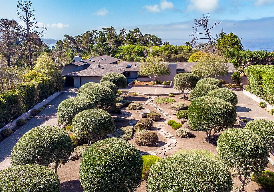 Impressive olive tree-lined estate entrance welcomes you to this Pebble Beach 1.5-acre gated home in the Carmel School District located near the Pebble Beach Lodge and Stevenson School. This 4,850 sqft residence is single level with large guest quarters that can be used as a separate living area for family or friends. Main house has ensuite bedroom, master suite w/large walk-in closet, living room w/Carmel stone fireplace & wet bar, and open floor plan between family room, formal dining, & stainless-steel chefs kitchen great for entertaining. Guest quarters has galley kitchen, 550 sqft living room w/Carmel stone fireplace & wet bar, master suite w/2 separate bathroom & closet areas, guest bedroom, and addl full bath. French doors from many rooms open onto a dramatic back deck, lush gardens, and fenced yard providing natural sunlight throughout the home. Vaulted ceilings, skylights, abundant built-in cabinetry top it all off. All of this in the heart of the 17 Mile Drive.