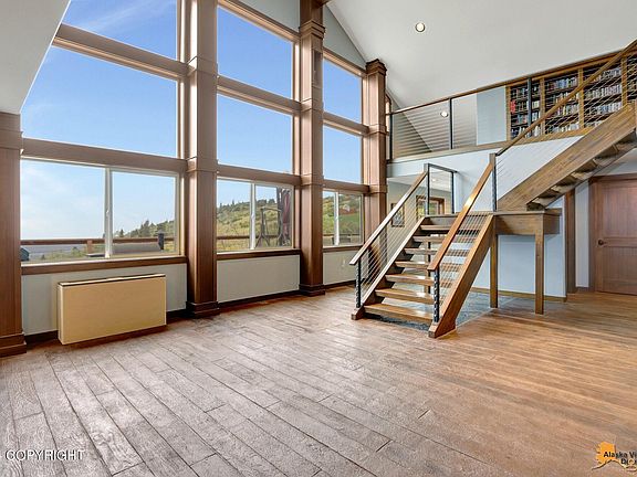 Stunning hillside home with unobstructed views of the inlet & mountains. Main floor lives like a sprawling ranch w/ 3 large bedrooms, 3.5 bathrooms, office w/ mtn views, dining room, open living area w/ ceiling to floor windows, access to the extensive 1,200 sq ft. wrap around deck & space to entertain. Chefs' kitchen w/ SS Viking appliances, 42'' gas range, double ovens, 2 dishwasher drawers,beverage bar & bamboo cabinetry. Upstairs boasts a beautiful loft-style family room, built-ins & second master with an ensuite bath. Basement level w/ game room/ workout area, half bath & access to the yard. Over 2,000+ sq ft of storage, 12ft ceilings w/ multiple rooms for a golf simulator, indoor trampoline area, or anything you can dream up! Luxury living on over an acre!! HOA is for street maintenance & plowing.