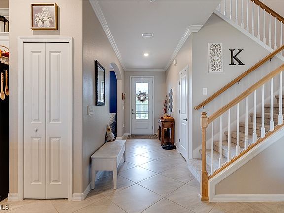 If you're dreaming of a one of a kind home, THIS is the one for you! Welcome to this beautifully maintained newer construction Lennar Amalfi home! This cozy home sits on a larger corner lot and has been designed perfectly for every day living and entertaining! If this home speaks to you, don't second guess it because the builders are no longer offering this floorplan in Hampton Lakes! This beautiful home offers 2,606sq ft, 4beds/3baths, screened front entry for nice cross-breezes, large kitchen with center island, pantry, granite counter tops throughout, white cabinets throughout, crown molding throughout, and more! The first floor offers a bedroom and bathroom at the rear end of the home and is perfect for guests or anyone wanting their own privacy. Extra flex room in the front of the home is perfect for whatever you desire it to be from a formal dining room, to an office, to a home gym, to a play room, whatever you want! The carpeted upstairs offers a large loft area, 2 other secondary bedrooms, secondary bathroom, and large primary room with ensuite bathroom offering a large walk in closet, dual sinks and walk in shower. Step outside to your own private Florida oasis! The screened in large extended lanai opens to a beautiful lake view perfect for soaking in the Florida sun in the mornings and afternoons or admiring the breath taking sunsets in the evenings. The climate controlled garage with overhead lighting and four extra dedicated outlets is a handyman's dream offering many tools and gadgets for new creations! Plus the large attic with lighting and plywood floor and overhead storage in the garage is perfect for gathering up any extra storage. Enjoy all of the resort style amenities that Hampton Lakes has to offer including the clubhouse with a lagoon style pool, full second story gym, library/study room, basketball court, tennis/pickleball/bocce courts, restaurants, golf for a tee time fee or OPTIONAL membership, and much more! This home and community is perfect for anyone and the highly rated River Hall Elementary School is just a walk/bike/golf cart ride away! Don't miss out on this opportunity to own your next dream home here in Hampton Lakes at River Hall!
