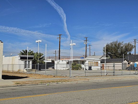 This unique property offers homeowners the opportunity to live at their place of business. Mature palm trees offer lushness in the desert. Fully fenced with 2 structures, a home and an office (on a permanent foundation). Mobile home was converted to 3 bedrooms with 2 full bathrooms. The office is ADA compliant and has its own restroom (also ADA compliant).