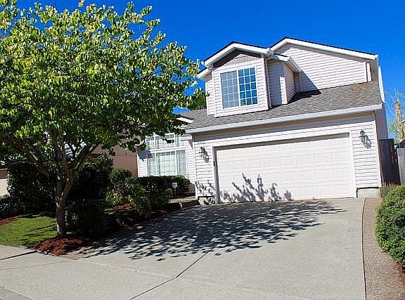Immaculate Progress Ridge home w/vaulted ceilings; Lots of light! Remodeled kitchen/baths; Quartz counters; Shaker cabinetry; New DW/disposal. 4 beds (one 1st flr). 3 full baths. Master has bay windows; Soaking tub; Huge walk-in closet! A/C, fireplace, & security system. Front/back sprinklers; Fully fenced backyard & shed. Outstanding Beaverton schools. Walk to Mountainside HS, New Seasons, Cinetopia, & more! Low HOA & Taxes.