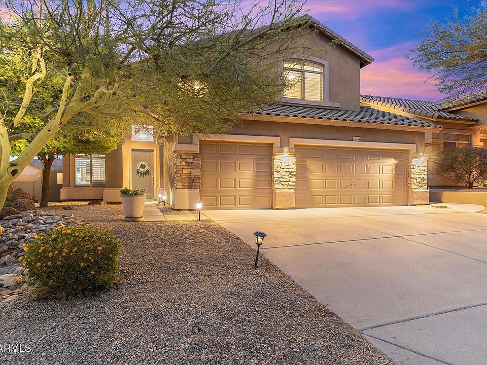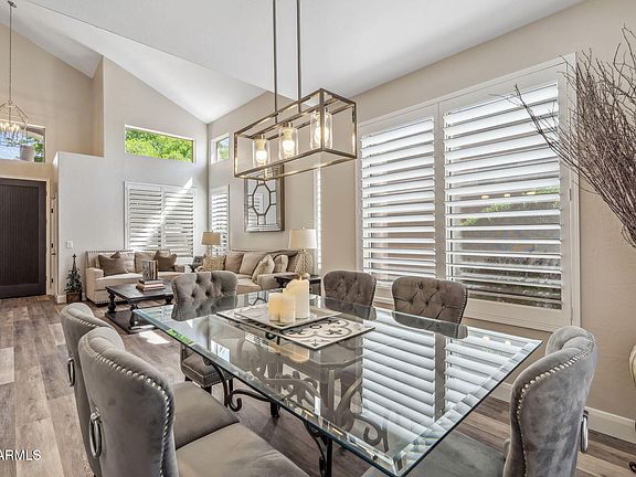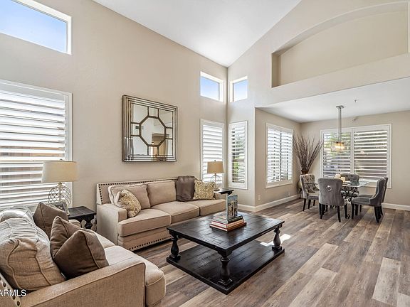 Beautifully updated 4 bed/2.5 bath home in The Overlook at McDowell Mountain Ranch! Step inside to soaring ceilings, abundant natural light, fresh paint, and luxury vinyl plank flooring throughout the first floor. The updated kitchen boasts stainless steel appliances, a custom backsplash, quartz counters, white shaker cabinetry, and opens to the casual dining area and family room with a cozy, two-way gas fireplace. The spacious primary suite features a walk-in closet, dual sinks, granite counters, a tiled walk-in shower, and a soaking tub. The resort-style backyard is an entertainer's dream with a sparkling pool, water features, travertine pavers, extended patio seating, and a putting green—ideal for hosting family and friends. Trane HVAC (2022). Award-winning McDowell Mountain Ranch is a premier master-planned community located in North Scottsdale.