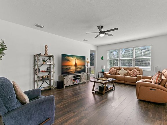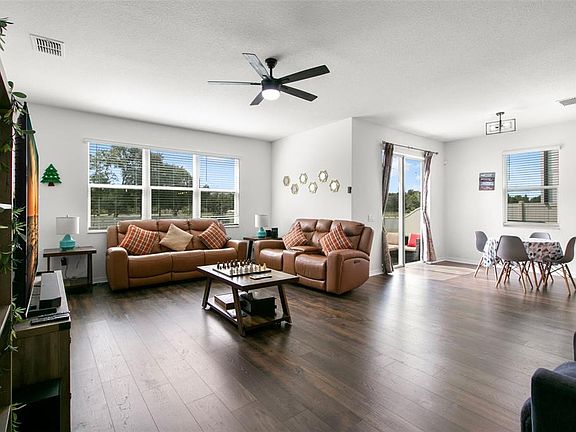 Welcome to luxury living in highly desirable Morris Bridge Manor this nearly new, two-story residence offers 5 bedrooms, 3 full baths, a 3-car tandem garage, and over 3,500 square feet of crafted living space. Thoughtfully designed for modern families, entertaining, and a comfortable Florida lifestyle w/ one of the largest oversized pie shaped lots in the community! Upon entry the foyer leads into flexible living areas and flows seamlessly into the great room, dining, and kitchen w/ beautiful solid surface Luxury Vinyl Plank flooring throughout! High ceilings, large windows, and natural light create an airy, welcoming ambiance. Central gourmet kitchen with a large island, granite countertops, espresso-stained cabinetry, stainless steel appliances, a butler pantry space and generous walk-in pantry. Perfect for cooking and entertaining. *FIRST FLOOR GUEST SUITE - Ideal for family or visiting guests, a full bedroom and bath are located on the ground level behind the great room for added convenience and privacy. All other bedrooms (including the Primary) are located upstairs + an additional bonus room retreat w/projection screen & home office/den. The primary suite offers double door entry & a spacious 22x16 oasis with views of the pond! The ensuite includes dual vanities, a walk-in shower, private toilet & an expansive walk-in closet. Three additional bedrooms are located upstairs, sharing a well-appointed full bath & ample walk-in closet space. The 3rd car tandem garage is equipped w/ fitness equipment, treadmill & static bike for your own in home gym experience! Sliding glass doors open to the sprawling oversized, fully fenced backyard offering tons of green space & beautiful pond views! Conveniently located just minutes from shopping, restaurants, running & biking trails with close proximity to I-75, I-4 & I-275, making commutes easy to downtown Tampa, Tampa International Airport, and all Tampa Bay has to offer! *LAWN & PEST CONTROL INCLLUDED!*