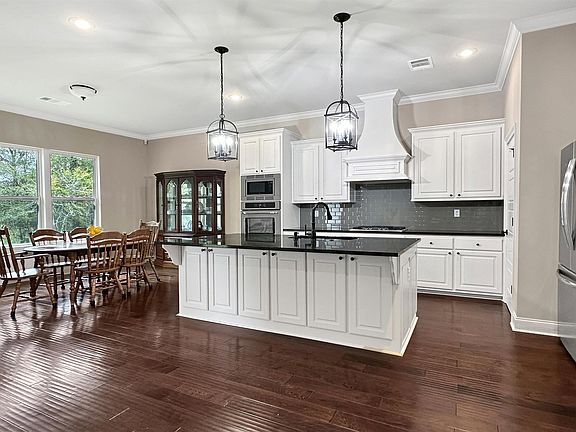 Open floorplan, split 3 ways with 3 FULL baths, a whole house generator, mudroom and large bonus room! This home is nestled in Twin Lakes Estates, a highly desirable area known for its excellent schools. The residents enjoy access to a stocked community lake with bass and sac-au-lait, over 12 acres of shared green space, and charming sidewalks. Outside, the home features professional landscaping, a large covered patio already plumbed with a gas line for your outdoor grill, and a whole-house generator so you’re never without power. Plus this lot backs up to woods so no neighbors directly behind you! The foyer is accented with exposed cypress beams that open to the formal dining room and spacious living area. The living room centers around a gas log fireplace and offers views of the backyard and patio. The gourmet kitchen includes stainless steel appliances, a gas cooktop with separate wall oven and built-in microwave, 3 cm St. Cecilia granite countertops, glass subway tile backsplash, painted custom cabinetry, pendant lighting over the large island, and oil-rubbed bronze fixtures throughout. This split floorplan includes a large primary suite featuring a custom-tiled shower, separate soaking tub, dual vanities with granite countertops, framed mirrors, and an oversized walk-in closet. Three additional bedrooms on the main floor each offer walk-in closets and share two nicely appointed full baths. A bonus room upstairs provides the perfect flex space for a media room, playroom, additional bedroom or home office. Additional interior features include a functional mudroom drop zone.