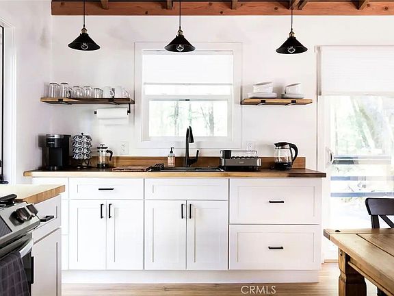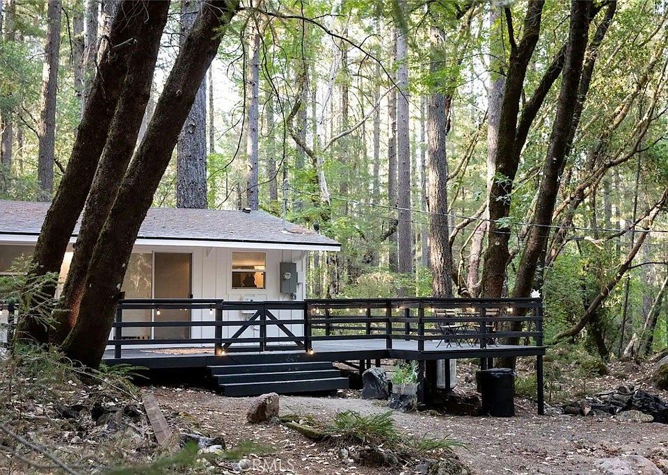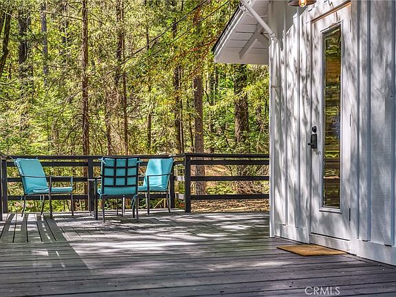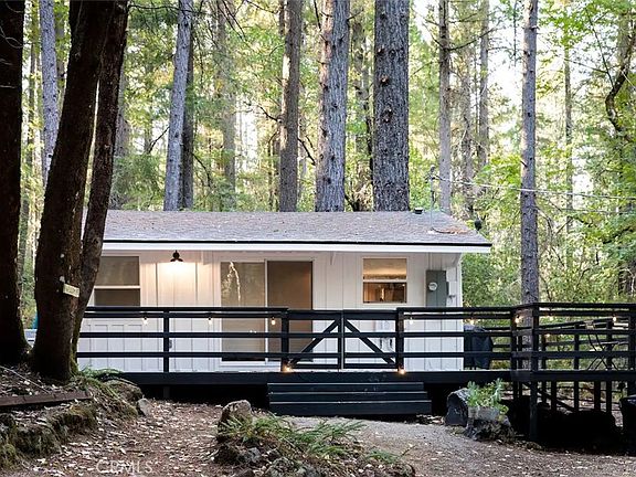 TURN-KEY VACATION RENTAL! Into the woods I go to find my soul...Escape to this secluded & totally renovated modern farmhouse cabin set on over an acre of land and tucked at the base of a hillside and bordering large acreage. Enjoy your coffee on the wrap-around deck under the canopy of the towering Cobb pines. Explore the beautiful foliage and large mossy rocks and savor the sounds of a seasonal creek that flows in winter. Completely remodeled this home features a cozy modern vibe with tile backsplash, upgraded stainless steel appliances, butcher block counter tops & more! An established vacation rental with steady income - this cabin has enjoyed a long history of providing a sweet Cobb Mountain retreat. Located within walking distance to Pine Grove resort, but set at the very back to the neighborhood, this home offers an ideal location for privacy and seclusion, while still being close to town. Discover beamed ceilings & real wood floors. Start a roaring fire in the wood stove insert fireplace - which easily heats up the whole cabin. In summer, open up slider to enjoy the best of indoor/outdoor living and the fresh mountain air. Upgrades include a new mini split for ease of heating/cooling year round. Cute & cozy with all the necessary comforts...this home can also be sold fully-furnished for a turn-key vacation home!