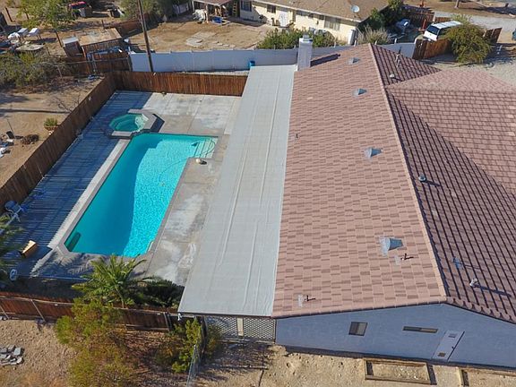 Entertainer's Dream!! Custom built home in Desirable area of upper Desert Knolls. Commuter friendly and close to shopping. Complete with whole house fan and two water heaters. This beautiful home offers a wonderful floor plan featuring Formal living and dining rooms, three-bedrooms, 2 bathrooms with skylights throughout. New carpet in Master Suite with walk in closet, tiled walk in shower and tub. French doors and Private covered patios off the Master bedroom and Family room. Kitchen boasts stainless steel appliances, pantry and breakfast nook which opens into the family room. Family room features recessed lighting, fireplace & large custom sliding glass door letting in generous amounts of natural light and showcasing the yard and pool surrounded by concrete and tropical landscaping. The tropical backyard features resort style SALT WATER pool and spa with generous space for entertaining guests.