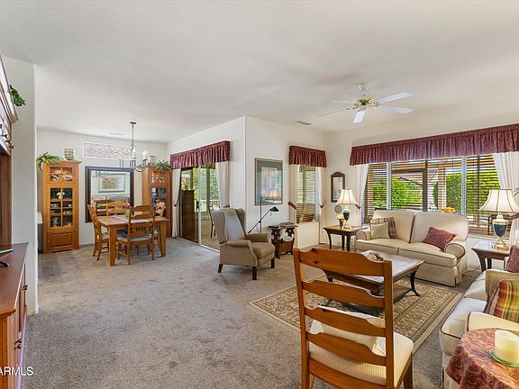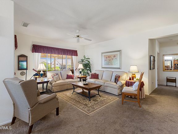 Well-Maintained Home with Arizona Room & Paid For Solar. This beautiful cared for home is move-in-ready and full of desirable upgrades. Featuring an inviting Arizona Room for year round enjoyment, which is no longer available in this model. Custom furniture in Great Room remains.The Office area off the kitchen is practical & convenient. Recent improvements include a new Roof, HVAC system & Appliances giving peace of mind to the next owner. The 2 car X garage has built in cabinets providing ample storage. Both the interior and exterior have newer paint .The screened in portion of the patio leads outside to a larger patio area great for entertaining. The yard is partially fenced. Don't miss this opportunity to own this fantastic property in The Grand an Adult Community with many amenities
