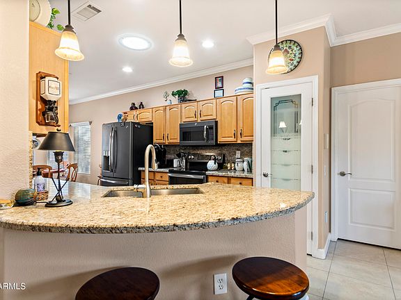 Beautiful Sun City Grand home with room to enjoy. This 3 bedroom , 2 bath home is on a large lot with a welcoming front courtyard and a spacious back patio to enjoy a lovely Arizona evening with your favorite beverage in hand. There is a 2 car garage and an additional 3rd bay for a golf cart. Features of this home also include a great room, formal dining area as well as a large eat in kitchen. Sun City is known for it's great golf courses, walkable paths around lakes and community centers with various activities to enjoy.