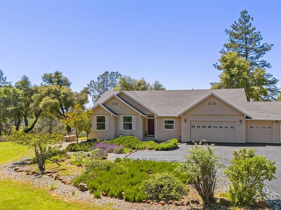 Beautiful home perfectly situated on 2.4 rolling acres in the very desirable Ridgewood subdivision. This 3-bedroom 2.5-bathroom home has been very well cared for. Do you need a fourth bedroom? A closet door and shelving will convert the office with ease. From the entry through the living room with vaulted ceilings, one is drawn to the picture windows and their panoramic view of the central valley and sierras. The kitchen is the central hub of the living, dining, and family rooms. Some of the notable features are; a three-car garage, a whole house Generac backup generator, sunscreens on the west side windows, a large Tuff Shed, and a fenced garden area.