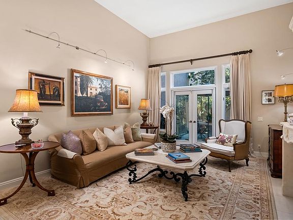 Set within the beautifully landscaped guard-gated "Alcala" in Rancho Santa Fe’s Whispering Palms community, this rarely available single-story townhouse offers 3 bedrooms 2 baths and 1,683 sqft of living space. This quiet easy-to-navigate end-unit with no stairs features an open floor plan with high ceilings, large windows, a fireplace and multiple sets of French doors opening to private lushly landscaped fully fenced front and back yards. The kitchen is equipped with a gas cooktop and a convenient breakfast bar. The primary suite includes a spacious bathroom with a walk-in shower and soaking tub, along with direct access to the serene back patio. Additional features include an attached 2-car garage with built-in cabinets, side-by-side washer & dryer and plenty of storage options. The vibrant "Alcala" development offers an array of amenities, including swimming pool & spa, paved walking paths and access to nearby scenic trails. Residents also enjoy proximity to the La Valle Coastal Club (former Morgan Run Club & Resort). Whispering Palms’ prime location provides easy access to Villa De La Valle, the I-5 freeway, renowned golf courses, pristine beaches, fine dining, shopping and schools. Don’t miss this incredible opportunity to add your personal touch to a single-story home with unlimited potential in a highly desirable Rancho Santa Fe location.