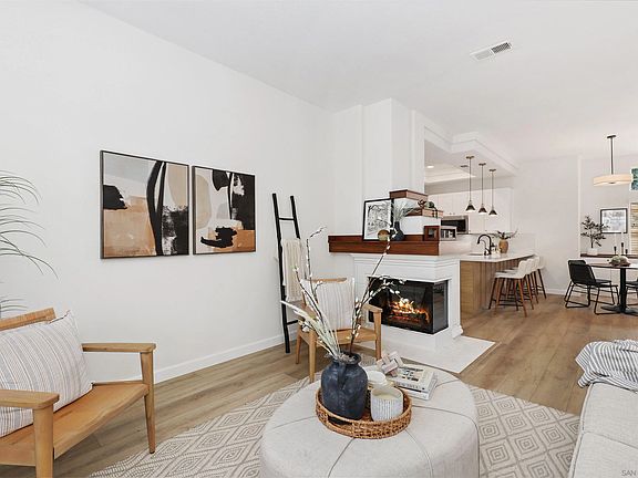 This completely remodeled Belmondo condo in Morgan Run Santa Fe community embodies modern elegance with its bright and open layout and high ceilings. Step into your inviting first level condo featuring new Toughlock Prime 28 mil wear layer waterproof luxury vinyl plank flooring. The kitchen is a chef's delight, equipped with new Quartz countertops and backsplash, and updated appliances including a new Kitchenaid slide-in convection oven, Kitchenaid flush-mount microwave, and a Newair 15" - 29 bottle dual-zone wine