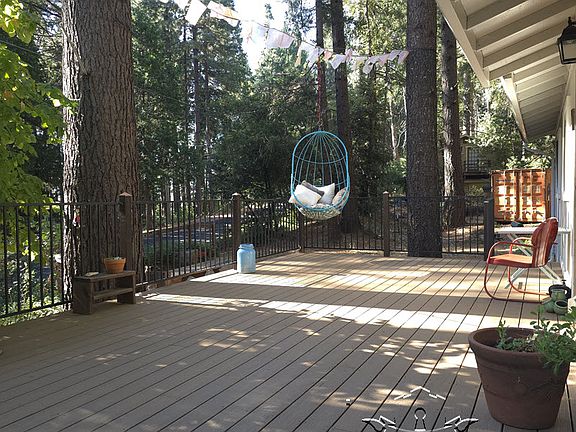 Front deck perfect for relaxing and enjoying the tranquil, wooded surroundings