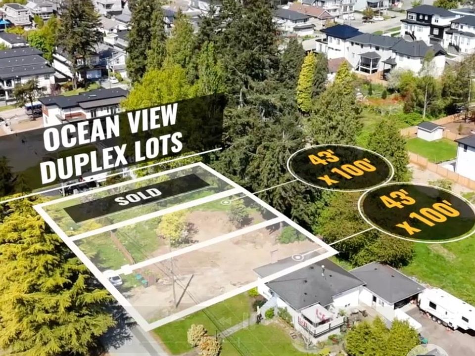 Ocean View Living Awaits! A rare opportunity to build your dream duplex home in South Surrey's sought-after neighborhood! This 43' x 100' lot offers stunning ocean views and comes with floor plans ready to go, making your vision one step closer to reality. Nestled minutes from White Rock Beach, shopping, and top-rated schools, this lot is perfect for those seeking a coastal lifestyle with urban convenience. Seize this chance to create a modern haven in one of Surrey / Whiterock's most desirable communities. Your dream home starts here – inquire today!