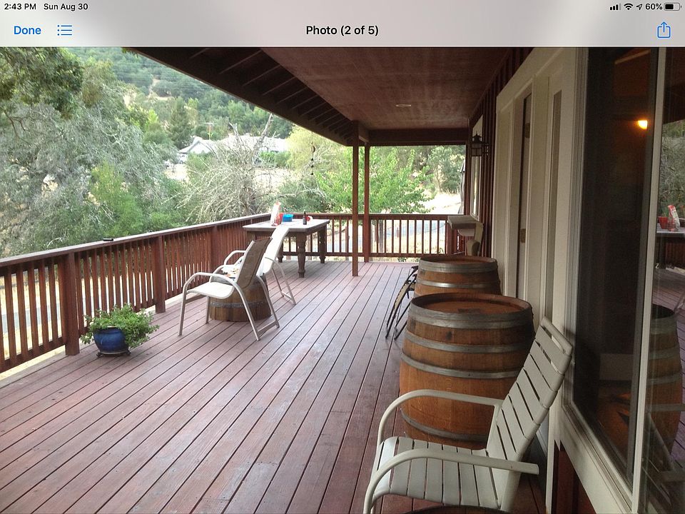 Private bungalow on 2 secluded acres backs to large vineyard. Large wrap around deck overlooking winter Creek. Situated at end of a private road. Tenants own driveway. Built In 2007.Built in 2007. Great room, vaulted ceilings, ceiling fans, several windows offers 360 degree views and light. Granite counters In kitchen , limestone bathroom with separate exit to back patio. Outdoor shower next to hot tub. Laundry hook ups in garage. Owner to provide Sonic internet. On well water, no charge. Tenant responsible for electricity, propane,Garbage . Pets negotiable. No smoking,