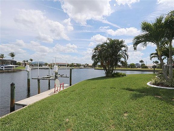 Classic Florida style meets modern living! This beautifully-updated, 3 bed/2 bath, waterfront home in Punta Gorda Isles has it all: located on an oversized, tip lot w/a fantastic canal basin view, 168ft of seawall & sailboat access to Charlotte Harbor & beyond. Inside, the spacious, open floor plan welcomes you w/a tranquil & relaxing design. The home offers oversized rooms, a secret/hidden room that doubles as home office & laundry/craft room plus a gourmet kitchen. Architectural details include new tile flooring throughout the main living area, soaring cathedral ceilings, multiple skylights & 4 sets of sliding glass doors that extend the living space out onto the lanai. The kitchen has quartz countertops, stainless steel appliances including a double convection oven w/cook top range & hood w/updraft vent system plus a mosaic tile back splash & designer pendant lighting. Other kitchen features include breakfast bar, walk-in pantry, under cabinet lighting & coffee bar area w/wine refrigerator. Split bedroom floor plan w/spacious master suite w/private access to lanai, pool & canal views plus updated master bath. Entertainers'' lanai lets you enjoy cocktail hour as you watch the day''s light fade into night. The lanai has an in-ground pool w/attached spa & waterfall feature. Two concrete docks (one w/lift) are steps from the back door. Lush, tropical landscaping & irrigation are both newly installed. Other amenities include an oversized 2-car garage, hurricane protection, water softener & security system.