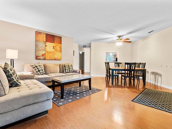You're sure to love this one! Beautifully maintained end-unit townhome offering modern updates and a desirable private location. The main level features an open-concept spacious living and dining room with bamboo wood flooring. Efficiently designed updated kitchen showcases newer cabinetry, granite countertops, tile backsplash, and stainless-steel appliances. A sliding glass door provides access to your private patio area. Main level primary bedroom suite includes a private full bath and walk-in closet. Additionally, there's a main level guest bedroom, which would make a great home office and an additional full bath! Upstairs you'll find a spacious suite with brand new carpeting! A large bedroom area, full bath, walk-in closet (with organizer!), and a versatile sitting room ideal for an office, den, or exercise space. Additional highlights include efficient natural gas hot air heat, central air conditioning, thermopane windows and an attached garage. With three bedrooms and three full baths, this well-appointed home combines comfort, style, and convenience in a peaceful setting close to nature trails at Dividend Park!
