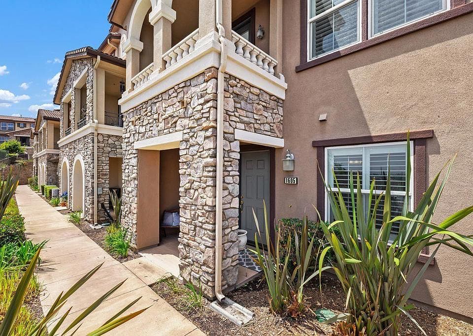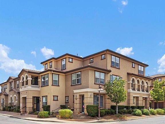 Welcome to Northstar at Sky Ranch! Perched on a hill, this townhome offers views to Mt. Laguna and a private location within the community! Offering 3 bedrooms, 3.5-baths with panoramic views from all three levels. As you enter on the first level, there is a bedroom with a full ensuite bath, walk in closet—ideal for guests or a home office. The main level features an open concept layout with a gourmet kitchen with granite countertops, an island bar & a walk in pantry. Adjacent to the kitchen is a spacious dining & living room. Enjoy the views from the balcony located right off the living room. A full-size washer & dryer and a powder room are conveniently located on this level. On the third level you'll find a spacious primary suite and an additional bedroom, both with private ensuite baths. The primary bedroom features a walk in closet and window seat, ideal for enjoying the views! Other notable upgrades include hardwood floors on the main level, crown moulding and plantation shutters throughout the home and epoxy flooring in the 2 car garage. The community amenities, include a pool, spa, clubhouse, dog park, and more—just steps from your front door. Convenient location with easy access to the 67, 52, and 125 freeways!