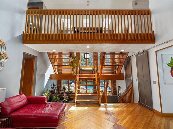Nestled on the serene shores of Johnson Pond, 1605 Hill Farm Road, offers a rare combination of natural beauty and distinctive architecture. Set on 3.2 acres, this 4,000 + sq. ft. contemporary home, built in the 1980s, is a true retreat. Boasting 4 bedrooms, 2 full baths, and 2 half baths, the property provides ample space for both relaxation and entertaining. The home's grand entry foyer welcomes you with soaring ceilings and an abundance of natural light. At its heart lies a stunning 18-foot-high octagonal fireplace, a striking centerpiece that adds warmth and character to the open living space. The unique design continues outdoors, where a large deck overlooks the picturesque pond, pool and woods. Whether you're enjoying the in-ground pool on a summer's day or simply taking in the peaceful waterfront views, this property invites you to embrace a lifestyle of tranquility. With its blend of modern design, natural surroundings, and unique architectural features, 1605 Hill Farm Road presents an exceptional opportunity to own a truly one-of-a-kind home on one of Rhode Island’s most desirable waterfront locations.