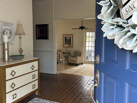 Executive style home w/ 4 bedrms and 4.5 baths has been freshly painted inside and out w/other updates. This architectural designed home is constructed on peir/beam and slab, having a spacious sucken great room and hidden wet bar. The oversized french doors lead out to a beautiful brick court yard. Stop to notice the hidden screened pocket doors at each back entrance for fresh air during early spring/fall days when you choose not to run the HVAC. The kitchen has gas stove top, double-ovens, breakfast nook and butlers pantry leading into the spacious dining rm. Down the wide brick hallway you will find 3 bdrms and 3 baths..notice the extra cabintry and builtins in each rm. Our favorite rm is the cozy den w/ oversized wood fireplace. This rm is a plus, could be used for den, library, study, or even a 5th bedrm. The double carport was closed-in years ago, adding a fullbath, standing fireplace, vanity, counter space w/refrigerator access. The side door entrance w/parking makes private for mother-in-law or guest coming and going. This space could also be a playrm, man-cave or homeschool rm. The circlular driveway and w/extra parking spaces was designed for large events (wedding, showers, birthdays etc.) This 1968 well thought out design and construction is timeless. The exposed interior brick walls are beautiful, the hidden bar, cedar closet, lg laundry and tons of storage make this older brick home unique. All appliances remain w/sale. Make appt to tour anytime. Owner Agent