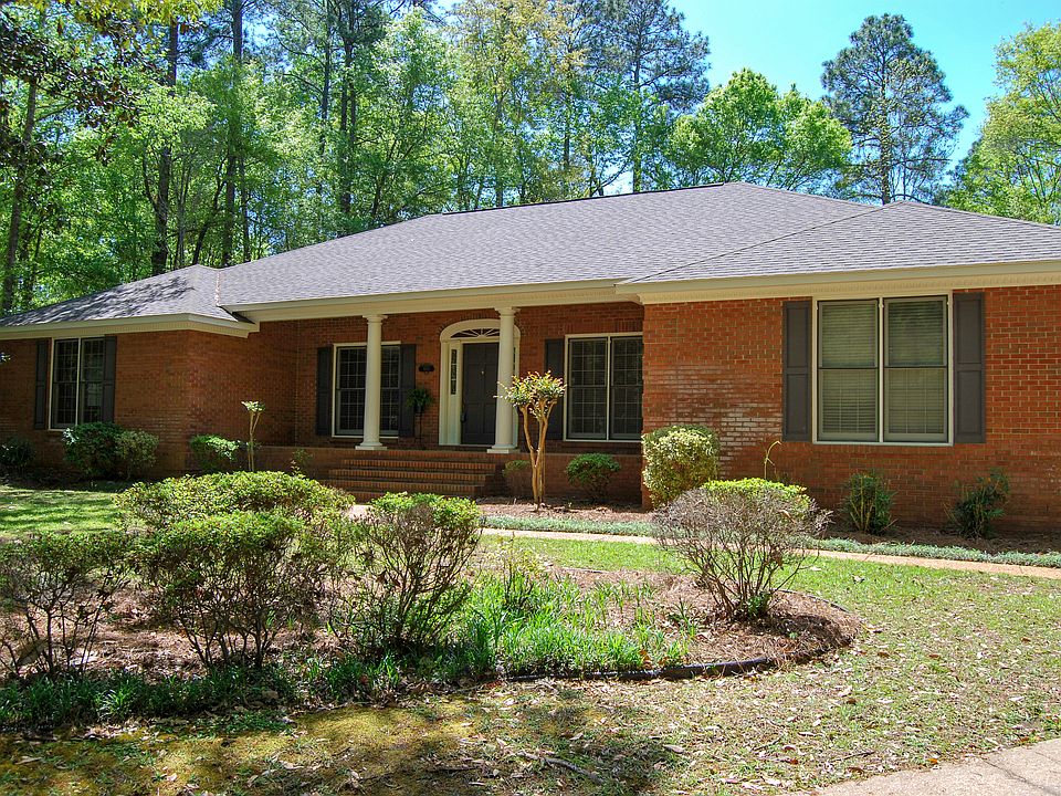 More space for the money awaits you in this all brick, well maintained, traditional home with plenty of extras! Features a dedicated office with rich wood built-ins, a glassed-in sunroom, an additional family room. 4 big bedrooms, large closets, wood-burning fireplace and skylights, Jacuzzi tub and walk-in shower, double vanities in master bath suite! Big 3 4 acre wooded lot with chain link fence.This home has all the room you need and located near the best entertainment and shopping.Home warranty