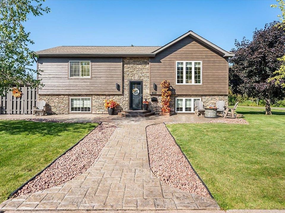 Beautifully Updated 4-Bedroom Split-Level on Corner Lot! Move-in ready 4-bedroom, 2-bath split-level home on a landscaped corner lot with numerous updates inside and out. The updated kitchen features granite countertops, tile backsplash, new sink and faucet, flooring, and appliances (included). Spacious living room with cultured stone gas fireplace and a large lower-level family room with bar — perfect for entertaining. Exterior upgrades include newer LP SmartSide siding on home and garage, newer roof, new overhead garage door, updated exterior lighting, and a stamped concrete patio. Both bathrooms have been updated, and an outdoor hot tub is included. Great curb appeal, functional layout, and plenty of space to enjoy both inside and out!
