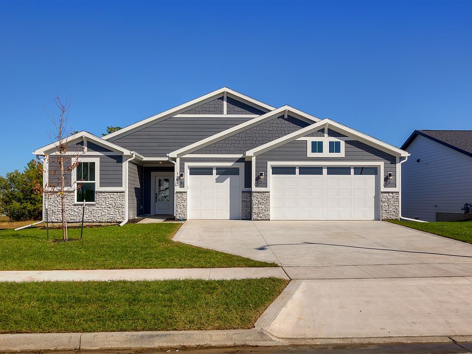 Step into comfort and luxury in the sought-after Fox Valley neighborhood in Waukee! The Brighton Plan by View Homes offers the perfect balance of open concept living and private spaces. Upon entering, you will enjoy 9-foot tray ceilings and durable LVP flooring throughout the open-concept living area, ideal for everyday living and entertaining. The kitchen features a gas range, hood, and walk-in pantry. Just off the kitchen, a spacious 10'x24' partially covered deck offers the perfect spot for family meals, playtime, or simply enjoying peaceful views of the backyard pond. The main level also features three bedrooms, including a generous Owner's Suite complete with a large tiled shower and walk-in closet. The finished walk-out basement provides even more space, including two additional bedrooms, a full bathroom, a family room, and ample storage. Outside, this home is completed with a fully sodded yard, landscaping with trees and shrubs, and an irrigation system.