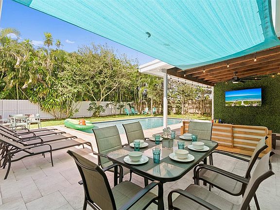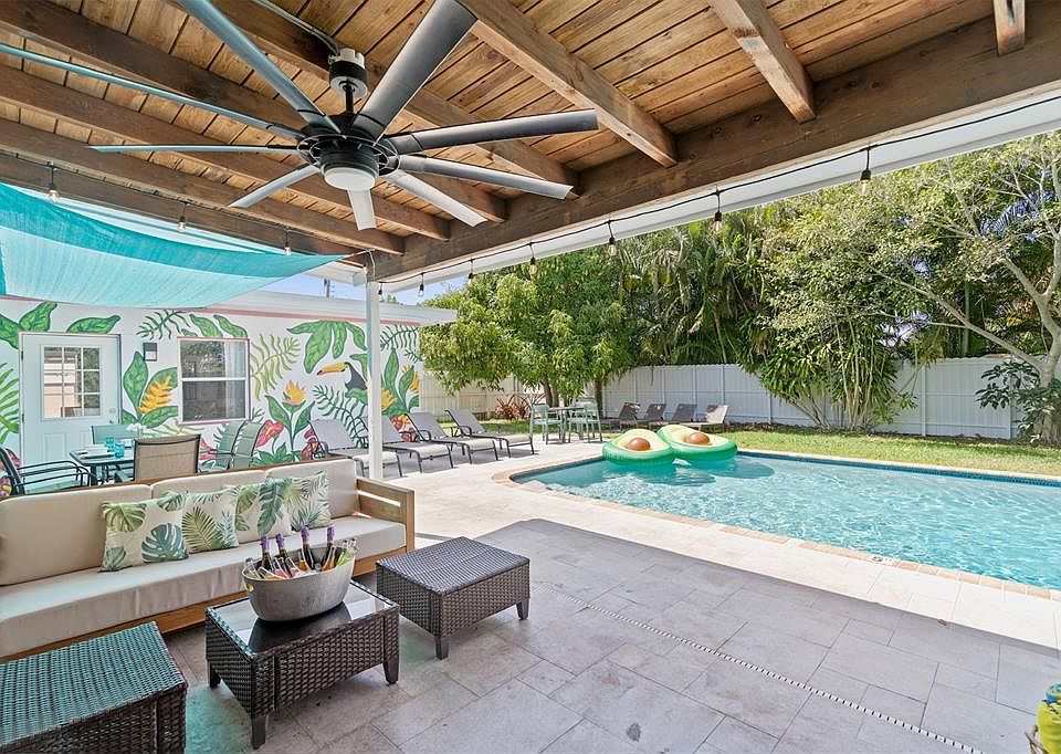 Luxury Seasonal Rental available January - April 2026. Spend your winter in paradise! This tastefully furnished 4-bedroom, 2-bath home offers a perfect blend of comfort and coastal living. Step into a spacious open floor plan, decorated to be modern and beachy. Upgraded kitchen and baths, vinyl flooring, three 70" TV's, walk-in closet, indoor laundry room. Enjoy the best of outdoor living with a newly resurfaced Pool, covered outdoor patio + TV, outdoor shower, BBQ, and large grassy area. Perfect for entertaining or relaxing in your own tropical oasis. Fully equipped with all the bells and whistles needed for a comfortable seasonal stay. Just minutes to beaches, dining, shopping, golf, and more. All utilities and maintenance included in rent. Pets welcome. Your seasonal retreat awaits!