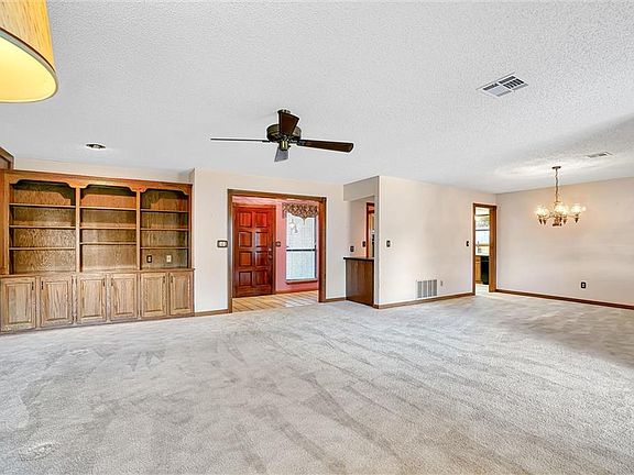 Are you ready for a lot of space? This home bedrooms, two baths, and a formal and kitchen dining. The kitchen has a dishwasher, refrigerator, electric counter-top cooktop, a built-in eye level oven and microwave/vent. Kitchen dining has a built-in cabinet and a door to the enclosed patio that has carpet and windows and leads to the backyard. This makes a great 2nd living. There is a built-in wet bar just steps from the living room. The living room is large and has a fireplace with gas logs. The living room also has built-ins and opens to the formal dining. The laundry room has a sink, folding area and cabinets. The master bedroom has a large walk-in closet, ceiling fan and a 2nd private patio. Master bath has tub and a separate shower. This is a split bedroom plan. The hall bath has a built-in linen, tub/shower combination and two sinks. The backyard has a wood privacy fence, lawn sprinklers, gutters & down spouts, and a storage building. There are walkways to storage building and to the alley. The garage has a fold-down ladder to access the attic, some built-in cabinets, two insulated doors and two electric openers. The Seller just put in a new concrete driveway. The storm shelter in garage, alarm system and a generator complete this home.
