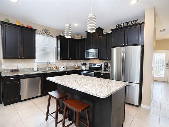 This beautiful Energy Star home is Located minutes from highway 417, Medical City and all new shopping areas in Lake Nona. A paver driveway and covered entry porch are just some of the home's inviting features. The home offers a spacious design, with 5 bedrooms and 3.5 baths, and has tiles throughout 1st floor and all bathrooms. Kitchen has center island for easy food prep, 42" cabinets with crown molding, and granite counter tops. A private master suite on the 1st floor is tucked away from living area and includes a large en-suite master bath with sizable walk-in closet, granite counter tops, dual vanity sinks, large soaking tub, glass enclosed shower and private lavatory. A large 2nd floor contains a loft/game room with 4 additional rooms and 2 bathrooms. Sprinkler system, R-38 Insulation and 14 SEER HVAC provides savings with low utility bills.