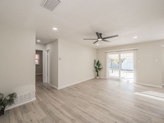 Welcome to this fully updated home featuring 4 bedrooms and 2 full bathrooms, located in a quiet, desirable neighborhood close to schools, a lake, parks, shopping, restaurants, and major highways. Enjoy living room, perfect for both entertaining and relaxation. This home also includes paid-off solar panels, offering the benefits of sustainable living and potential energy cost savings. It also has a separate utility room. The house has been beautifully updated with new texture and interior paint, new flooring throughout, LED lighting, modern ceiling fans with remote controls, all new black-finish fixtures, granite countertops, new appliances, and much more. The foundation has been repaired and comes with a transferable warranty for added peace of mind. Step outside to a large, square-shaped backyard, ideal for family gatherings, outdoor fun, and endless possibilities.