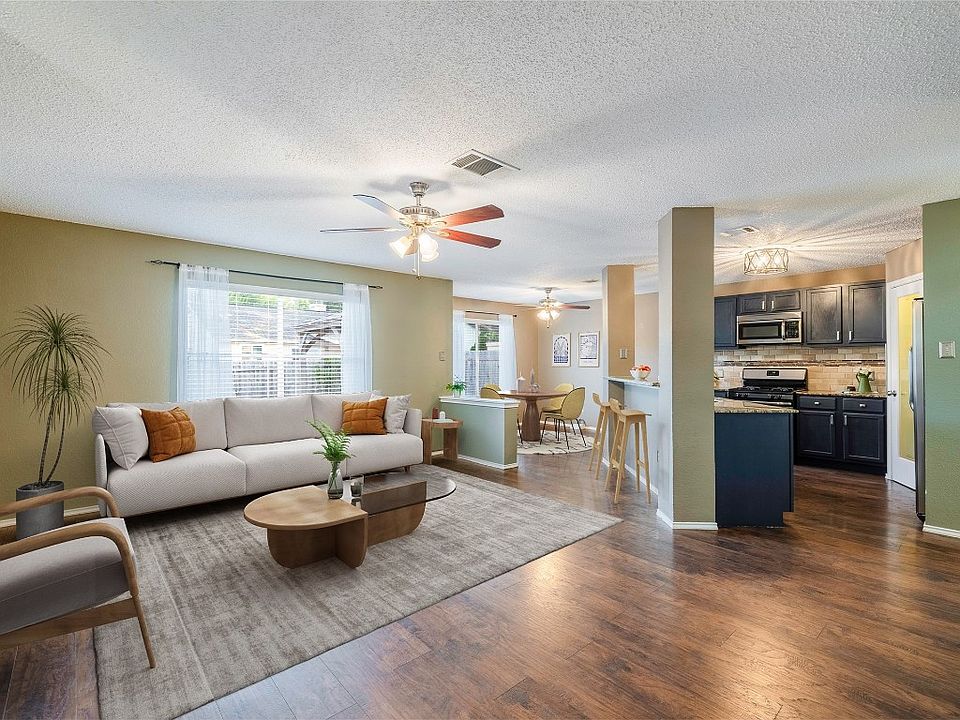 ASSUMABLE VA LOAN w/ 4% INTEREST RATE and PRE-SALE INSPECTION available! Looking for charm and a relaxing outdoor retreat in an unbeatable location? This tranquil, sun-bathed beauty boasts a spacious backyard complete with a WOODEN DECK and a serene GAZEBO, perfect for unwinding or entertaining. Abundant natural light highlights the beautiful vinyl plank flooring throughout—NO CARPETS in sight. A thoughtfully designed floorplan offers private bedrooms for your comfort and the FULLY-UPDATED BATHROOMS add modern appeal. Culinary enthusiasts will delight in the GAS RANGE, ample pantry space, and excellent visibility into the living room, dining area, and serene backyard. The Chandler Creek community offers easy access to playgrounds, picnic areas, ball fields, a refreshing pool and excellent Round Rock ISD schools. Frigidaire refrigerator and washer/dryer (new in 2022) convey! Roof 2018, warranty transfers. New gutters October 2023. Move-in as-is or customize to your heart's content—your opportunity awaits!