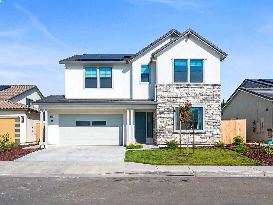 Welcome home to this stunning brand-new build in North Modesto! Built in 2025, this 4-bedroom, 2.5-bath modern home -featuring nearly 2,500 sq. ft. of living space- offers comfort, efficiency, and style. The open-concept layout features all-electric appliances, an energy-efficient design, and fully OWNED SOLAR for long-term savings. The primary suite is conveniently located on the first floor -creating the perfect flow for families or multi-generational living. Upstairs, you’ll find spacious bedrooms and a versatile loft area ideal for work or play. Step outside to a professionally designed $30,000 backyard -with a large lawn -perfect for entertaining or relaxing under the California sun. With NO HOA, this move-in-ready home combines convenience and value. Located close to top-rated schools, parks, shopping (including Costco), and just 2.5 miles from Highway 99 for easy commuting. Don’t miss your chance to own this beautifully upgraded, energy-smart home in one of Modesto’s most desirable neighborhoods!
