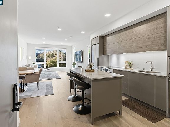 Nestled in the heart of downtown Walnut Creek, this bright and modern 1,074 sq ft, 2-bedroom, 2-bath home at The Riv offers the perfect blend of style, comfort, and convenience. With contemporary finishes and a thoughtful open layout, it’s designed for easy living in one of Walnut Creek’s most desirable locations. Step inside to soaring floor-to-ceiling windows, hardwood flooring, and abundant natural light that fills every corner. The European-inspired kitchen features sleek cabinetry, quartz countertops, a spacious island, and stainless-steel appliances—seamlessly connecting to the open living area and south-facing balcony with peaceful, tree-lined views. The primary suite offers balcony access, generous closet space, and a beautifully updated bath, while a convenient office nook sits just outside the secondary bedroom—ideal for remote work or study. Additional highlights include two deeded garage spaces, an extra storage unit, an in-unit laundry closet, and access to exceptional community amenities such as a rooftop deck with BBQ, garden patio with firepit, and a modern work lounge. With shopping, dining, BART, and freeway access just steps away, this home combines luxury, location, and lifestyle—modern downtown living at its finest.